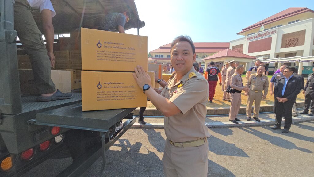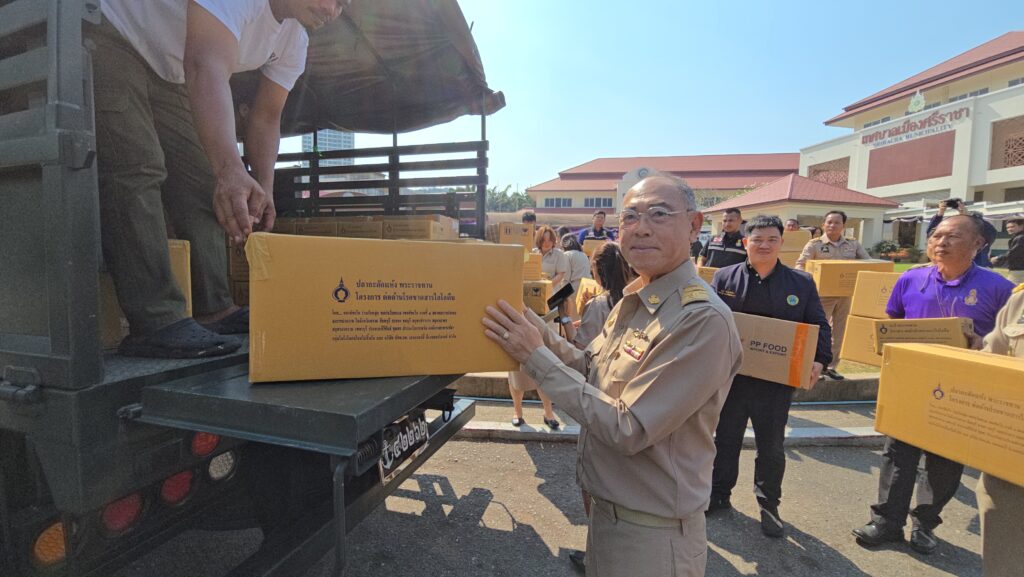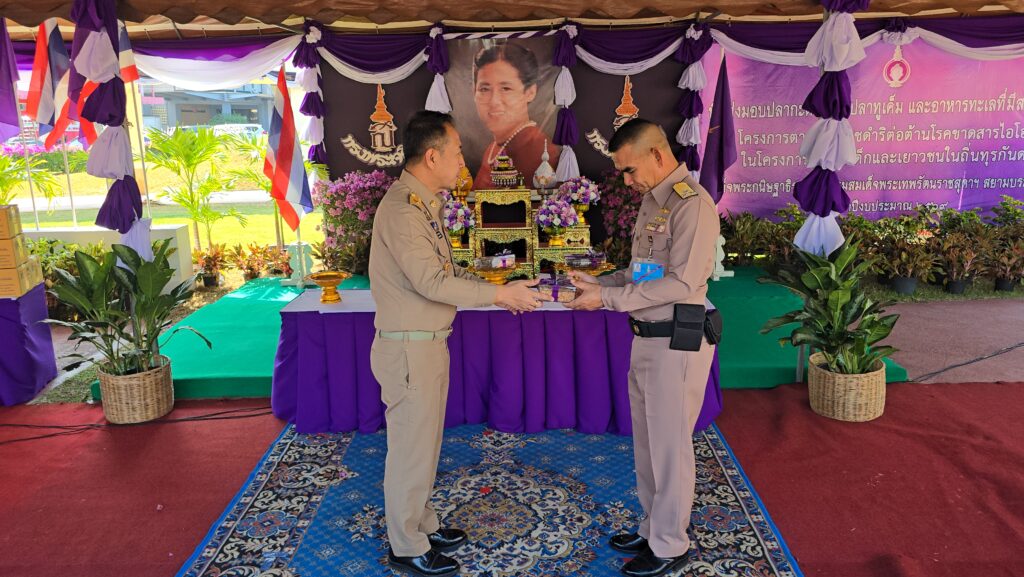 เมื่อเวลา  10.00 น.  วันที่  2  ก.พ.  69   ที่ หน้าสำนักงานเทศบาลเมืองศรีราชา  อ.ศรีราชา  จ.ชลบุรี   นายนริศ  นิรามัยวงศ์ ผู้ว่าราชการจังหวัดชลบุรี ได้เป็นประธานในพิธีส่งมอบอาหารทะเลที่มีสารไอโอดีน ให้กับ พลเรือโทเฉลิมชัย  สวนแก้ว ผู้บัญชาการทัพเรือภาคที่ 1  เพื่อเดินทางไปส่งมอบให้กับโครงการส่วนพระองค์ สมเด็จพระกนิษฐาธิราชเจ้า กรมสมเด็จพระเทพรัตนราชสุดาฯสยามบรมราชกุมารี ในพื้นที่ภาคเหนือ เพื่อโดยเสด็จพระราชกุศล โครงการตามพระราชดำริต่อต้านโรคขาดสารไอโอดีน โดยมีตัวแทนจากทางภาครัฐและเอกชนเข้าร่วม