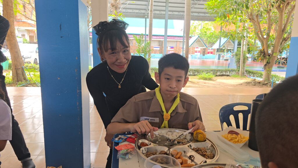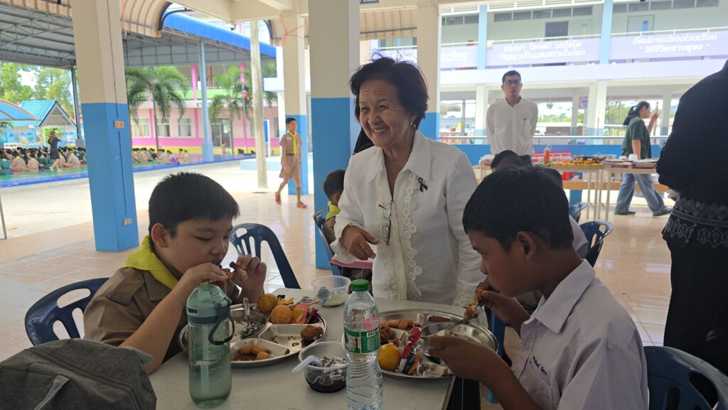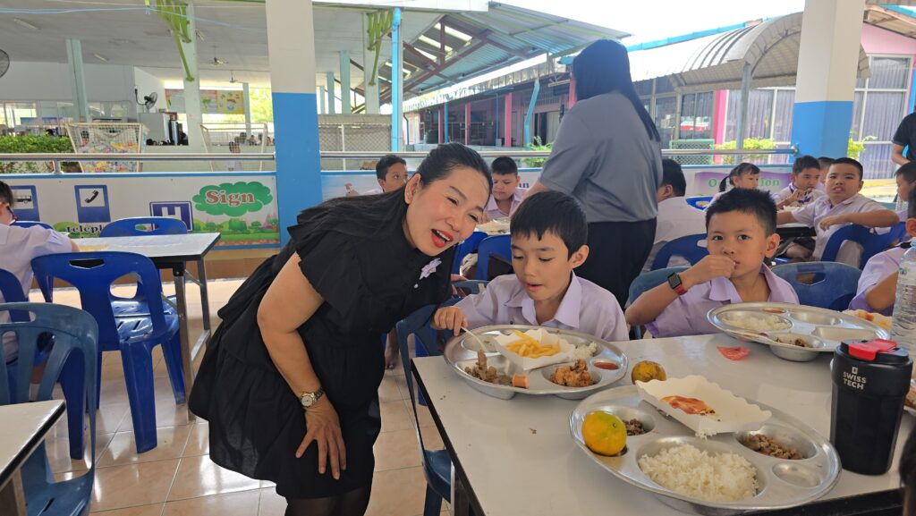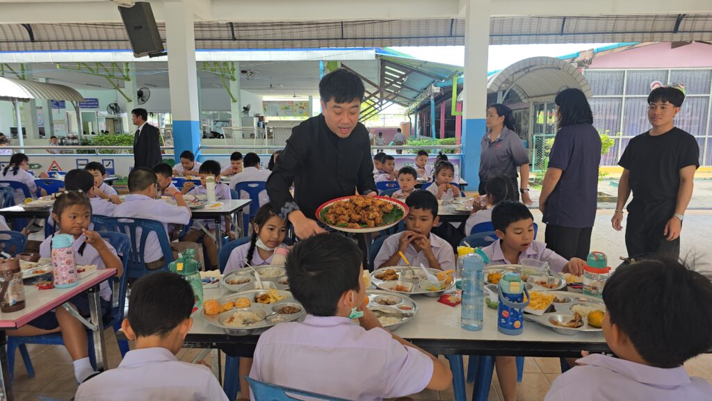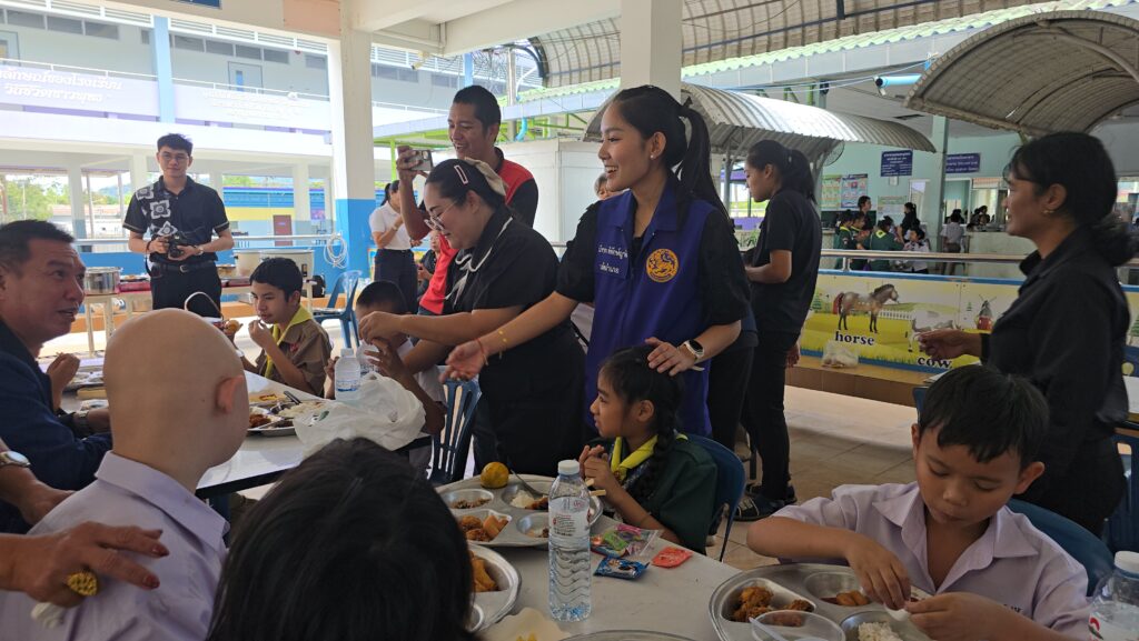 บรรยากาศเป็นไปอย่างอบอุ่น เต็มไปด้วยรอยยิ้มและเสียงหัวเราะของเด็ก ๆ ที่ต่างรู้สึกดีใจเมื่อได้รับประทานอาหารกลางวันมื้อพิเศษ ซึ่งประกอบด้วยเฟรนช์ฟรายส์ ไก่ทอด ผัดกะเพราหมูสับ ขนมขบเคี้ยว และของหวาน เด็ก ๆ ต่างรับประทานกันอย่างเอร็ดอร่อยและสนุกสนาน ทำให้กิจกรรมในครั้งนี้เต็มไปด้วยความสุขและความประทับใจของทั้งผู้ให้และผู้รับอย่างแท้จริง