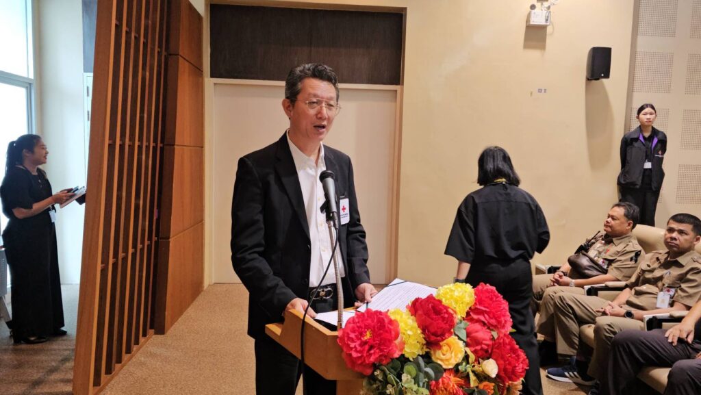 รองศาสตราจารย์นายแพทย์โศภณ  นภาธร ผู้ช่วยเลขาธิการสภากาชาดไทย ผู้อำนวยการโรงพยาบาลสมเด็จพระบรมราชเทวี ณ ศรีราชา เป็นประธานในพิธีเปิด โครงการฝึกอบรม การซ้อมแผนช่วยเหลือผู้ประสบอัคคีภัยในอาคารสูง โรงพยาบาลสมเด็จพระบรมราชเทวี ณ ศรีราชา ประจำปี 2569