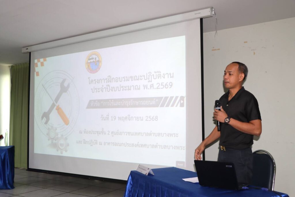 ที่  ศูนย์เยาวชนเทศบาลตำบลบางพระ ต.บางพระ อ.ศรีราชา จ.ชลบุรี  คณะผู้บริหาร หัวหน้าส่วนราชการ และ บุคลากรของเทศบาลตำบลบางพระ ได้เข้าร่วมโครงการฝึกอบรมขณะปฏิบัติงาน ประจำปีงบประมาณ พ.ศ. 2569 หัวข้อ การใช้และบำรุงรักษารถยนต์ ด้วยในปัจจุบันการทำงานของพนักงานและลูกจ้างเทศบาลตำบลบางพระ บางส่วน ที่ยังขาดความรู้ความเข้าใจในการปฏิบัติงานในหน้าที่บางเรื่อง ซึ่งต้องอาศัยทักษะ ความรู้ ความสามารถ และการเรียนรู้ของบุคลากรอย่างต่อเนื่อง